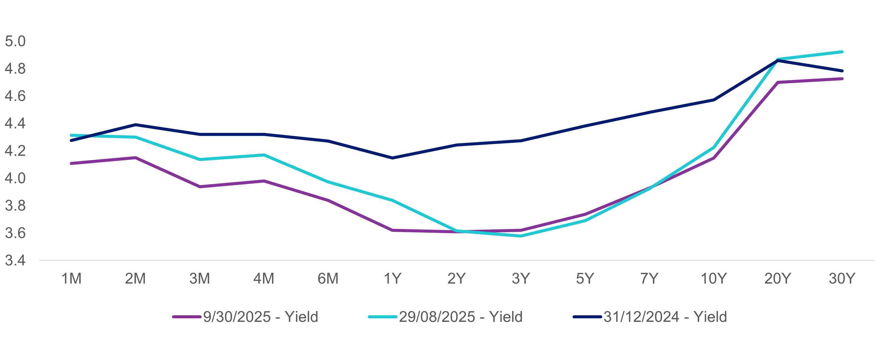 Fixed income markets were positive, with the Bloomberg U.S. Aggregate Index up 1.1 percent. The U.S. Treasury yield curve modestly steepened in anticipation of further rate cuts and weakening employment data, as 1-year U.S. Treasuries declined (22 bps to 3.6 percent) slightly more than 30-year Treasuries (14 bps to 4.7 percent). Mortgage-backed securities, investment-grade corporates and high yield all had spreads tighten with heavy new issuance of the latter to take advantage of a favorable rate environment.
